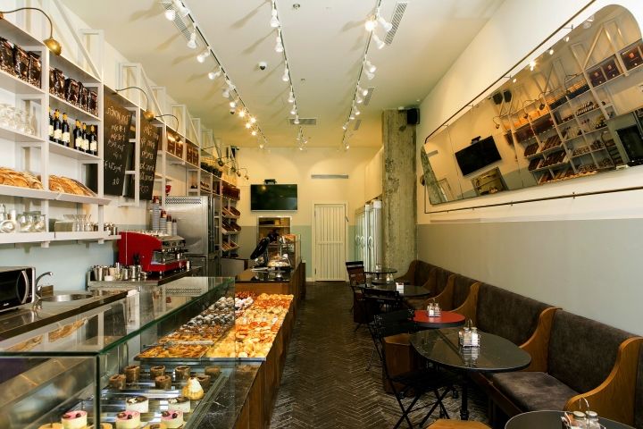 Некоторые владельцы предпочитают украшать витрины изображениями выпечки, тогда как другие оставляют их нетронутыми. Оба варианта неплохо подходят для магазинов подобного формата: в первом случае благодаря дополнительному декору вы привлекаете внимание прохожих и напоминаете им о том, какая продукция реализуется в пекарне, второй же вариант позволяет людям оценить ассортимент и внутренний дизайн уютной и стильной торговой точки.